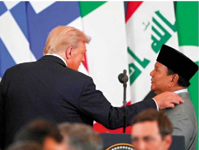 图片:特朗普(左)13日在埃及与印尼总统普拉博沃会谈。 \ 美联社
